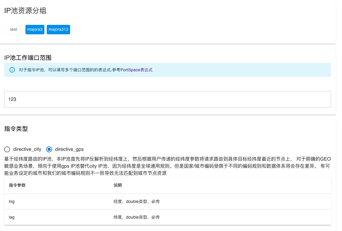 - directive_gps:基于经纬度路由的IP池,本IP池首先将IP反解析到经纬度上,然后根据用户传递的经纬度参数将请求路由到具体目标经纬度最近的节点上