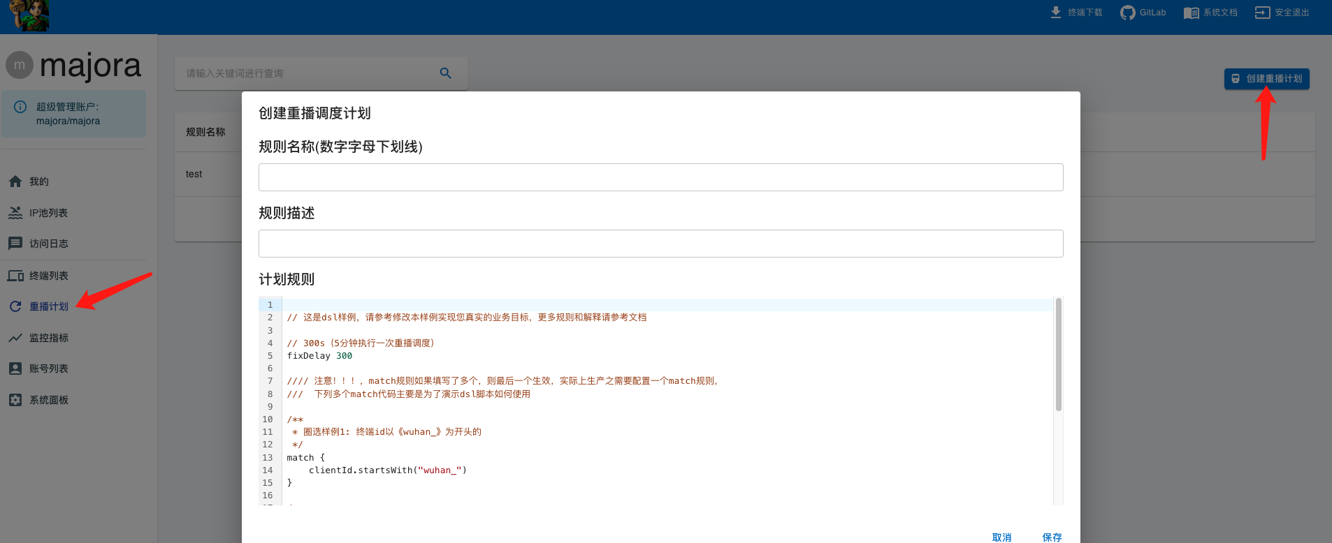 我们在重播计划列表页面点击《创建重播计划》既可开始重播计划设定